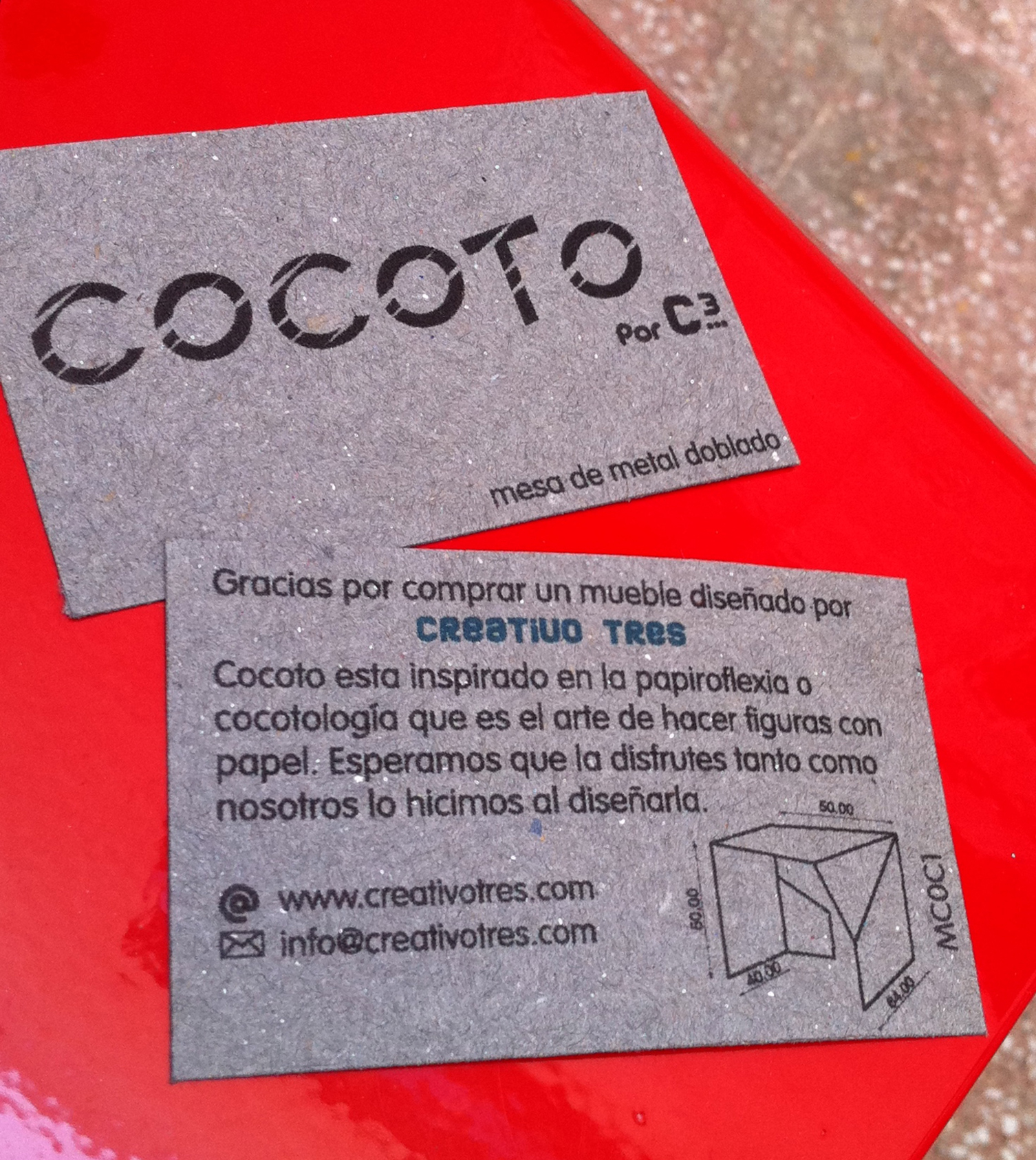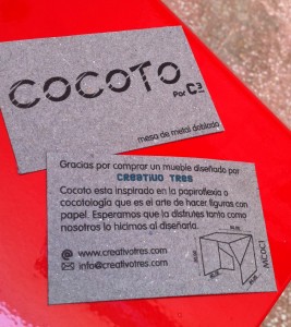 En esta tienda ya se venden los muebles La Butaca y el Sillón que Creativo3 diseñó para ti. También están a la venta Cocoto y Cocotol que son dos mesas de metal doblado que están inspiradas en la papiroflexia y que son dos productos muy inovadores ya que la forma de la pieza la hace única.